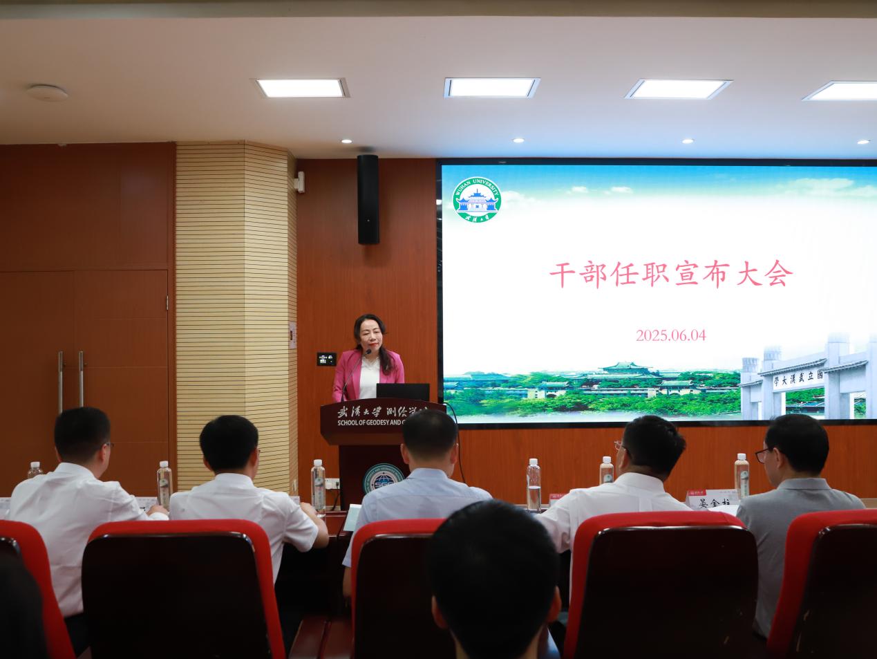 2025年6月4日下午,足球欧洲杯 召开干部任职宣布大会。校党委常务副书记沈壮海,校党委常委、组织部部长姜星莉出席会议,足球欧洲杯党政领导班子成员和全体教职工参加大会。会议由足球欧洲杯党委书记晏金柱主持。