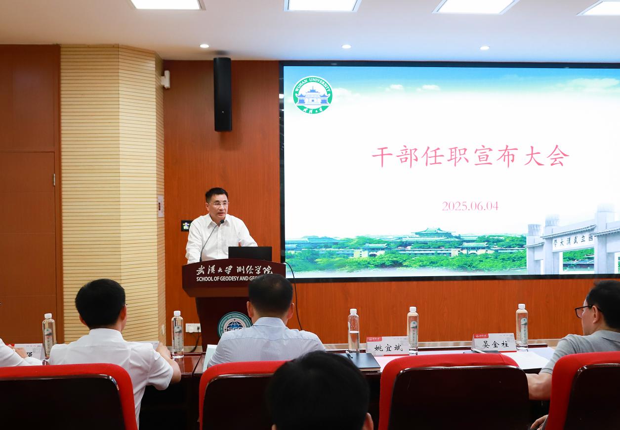 新任院长邹贤才同志作就任发言,他首先对学校党委的培养与全院师生的信任表达了感激,对上一届领导班子所付出的艰辛努力和取得的成绩致以崇高敬意与由衷感谢。邹贤才表示,此次履新,深感责任重大。今年恰逢“十五五”规划布局,要高起点谋划测绘学科转型升级、新专业建设、拔尖创新人才培养等重点工作,为我校“两步走”战略和空天信息强校做出新的更大的贡献。