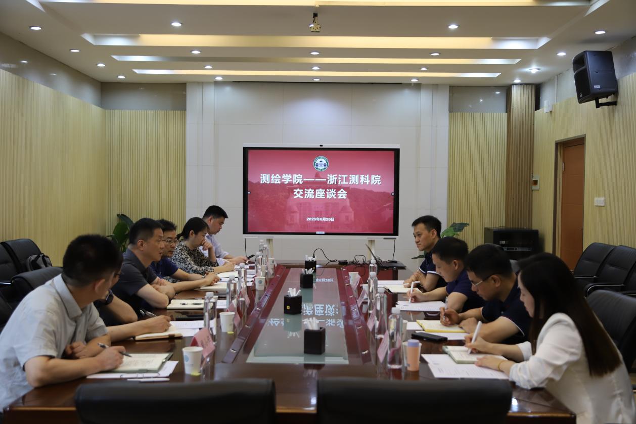 6月26日上午,浙江省测绘科学技术研究院党委书记、院长金利强率队来足球欧洲杯开展调研交流活动。足球欧洲杯院长邹贤才,副院长金涛勇、汪志明,党政办主任刘晓慧参与交流。