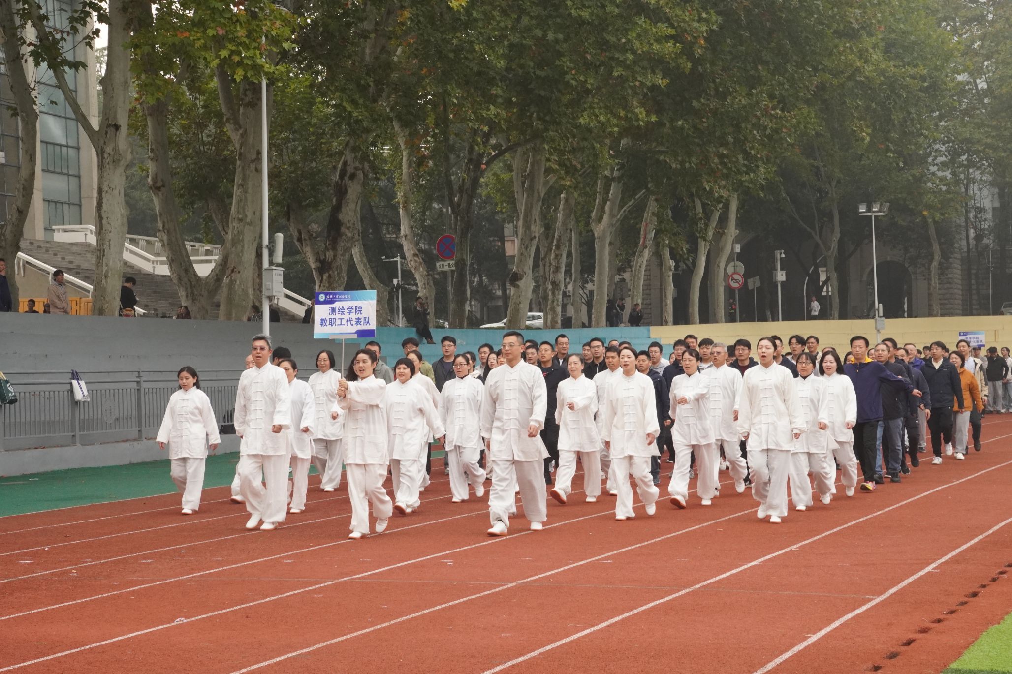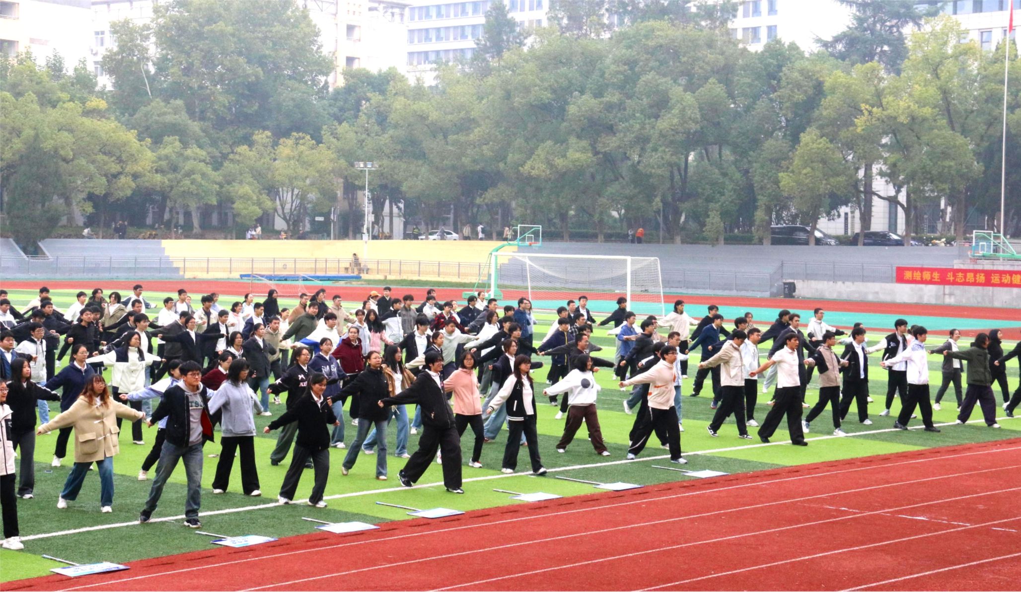 开幕式结束后,教职工展示了八段锦健身气功,2024、2025级本科生进行了广播体操展演。