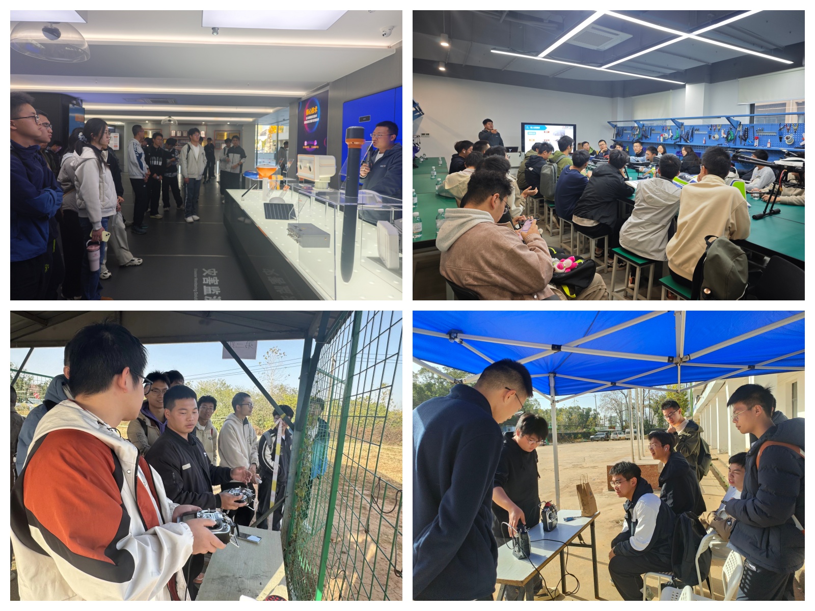 在武汉智能鸟无人机培训基地,每位同学在专业人员的指导下,各自亲手操控无人机,按照既定路线进行了飞行。通过实操体验,同学们对无人机的飞行原理与操作流程有了更深刻的理解,实现了理论知识与课外实践的生动结合。