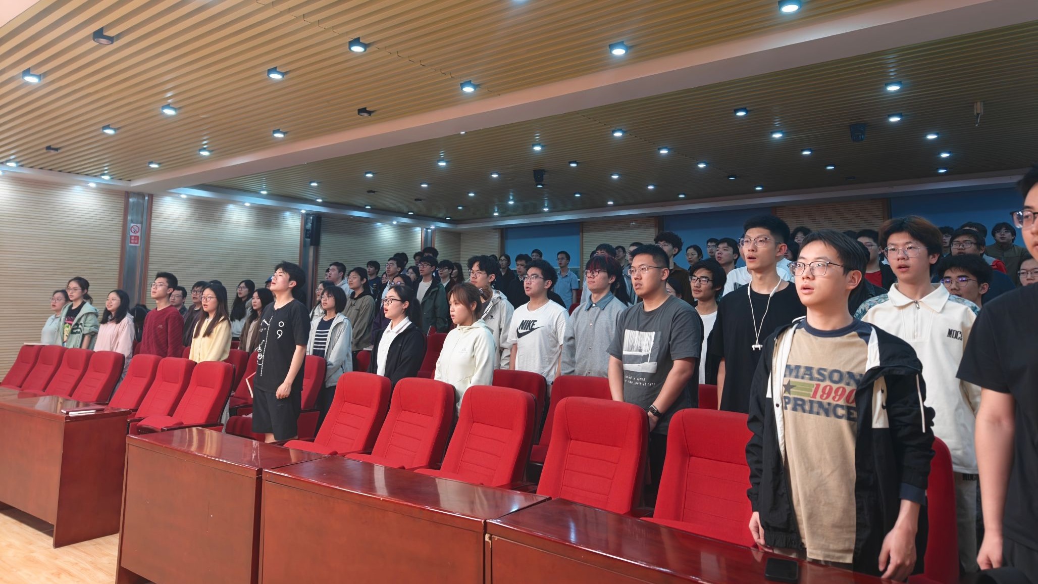 首先,全体起立,奏唱国歌。