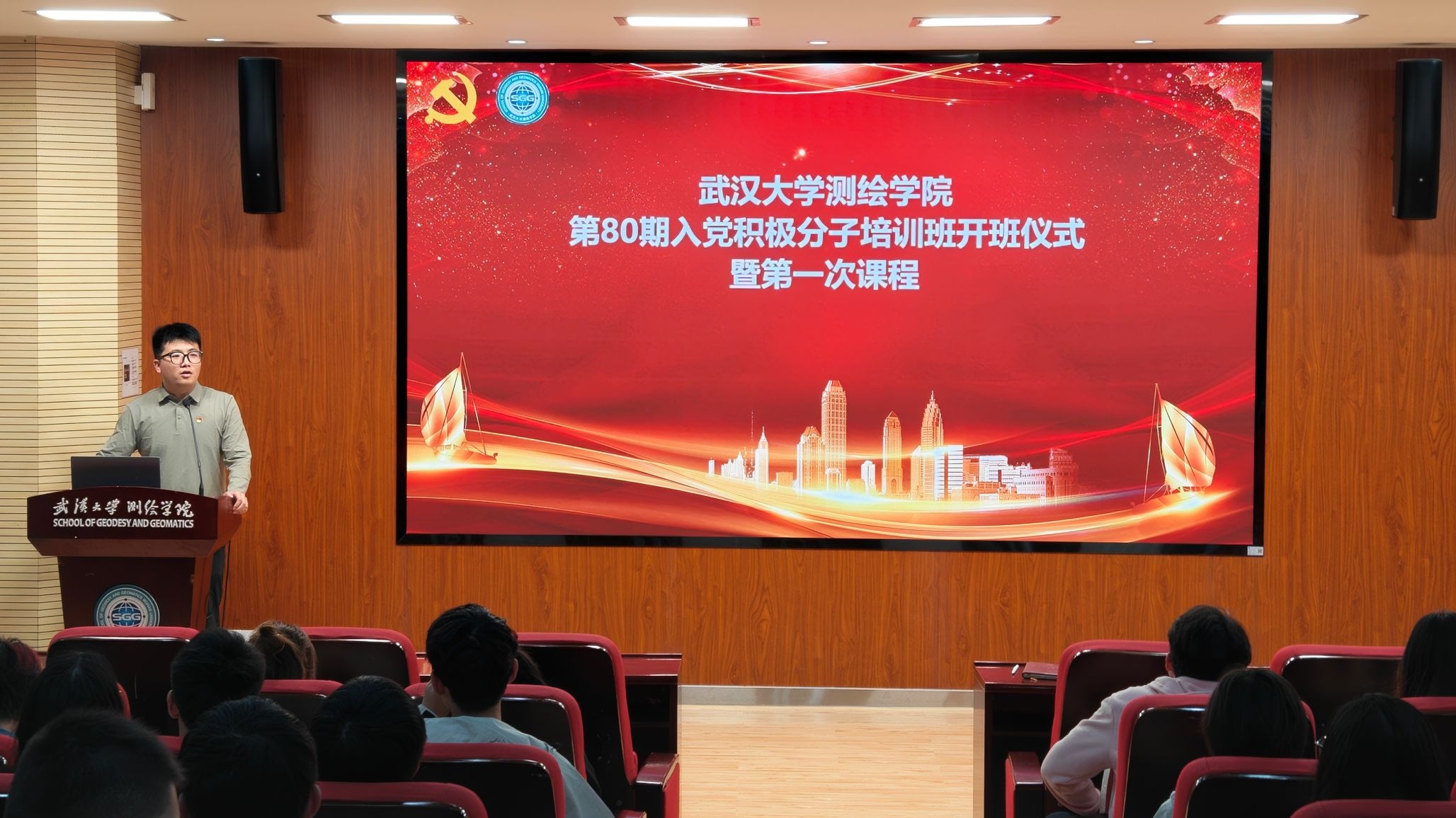 4月9日,足球欧洲杯 第80期入党积极分子培训班开班仪式暨第一次党课在足球欧洲杯202报告厅顺利举行。足球欧洲杯党委副书记胡俊英出席仪式并进行开班动员讲话。培训班班主任、学工办副主任李超主持本次开班仪式。